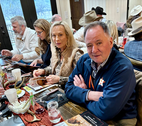 We have a terrific menu being prepared for us by Hill Country Heritage Catering. It will include appetizers of quail medallions, personal charcuterie boxes, a filet mignon entree with mashed potatoes, and, for dessert, Oreo cheesecake and lemon bundt cake.